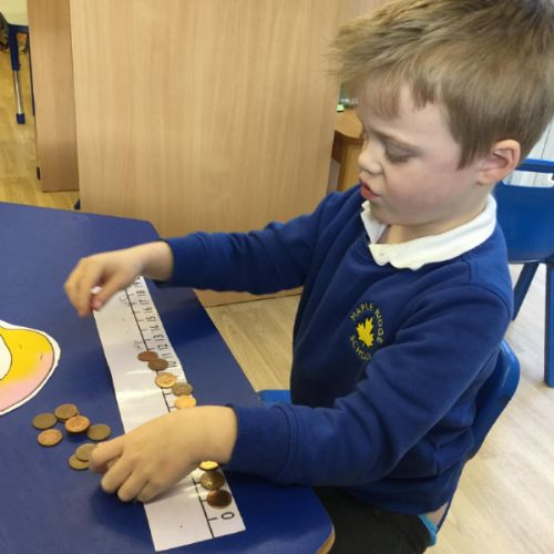 At Maple Ridge we teach Maths in a way which excites and engages children in the national curriculum, this allows them to apply their skills in a practical and ‘real world’ way and make links between numeracy and their learning in other areas such as topic. We prioritise the skills which will enable children to be as independent as possible and develop life skills, such as time, money and basic calculations.